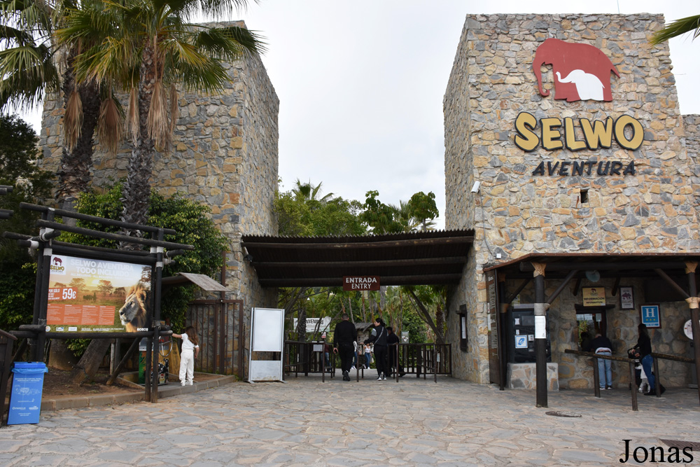 Jeudi 6 avril 2006, lors de notre voyage andalou, nous visitons Selwo Aventura, situé à Estepona. Cet espace zoologique, appartenant également au groupe Parques Reunidos, est un grand parc vallonné, initialement divisé en quatre parties. L'une d'entre elles est fermée depuis quelque temps et la visite s'organise donc maintenant sur trois zones, avec un déplacement organisé en camion de l'une à l'autre.