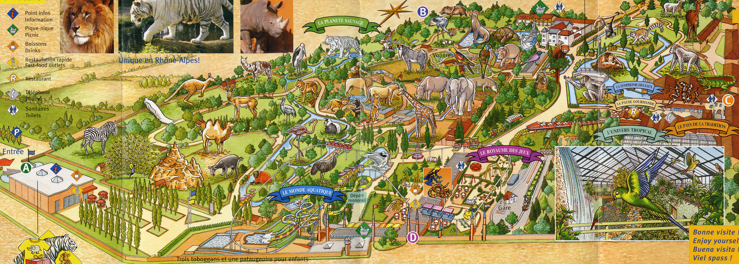 Touroparc est un parc zoologique mais aussi un parc d'attractions. Je vais me limiter à décrire la visite du zoo. Le nom Touroparc provient de l'expression "tour au parc".