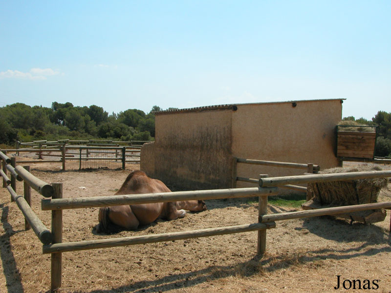En continuant sur ce sentier, le visiteur s'approche de l'enclos des dromadaires (Camelus dromedarius). Celui-ci est délimité par de larges barrières en rondins. Un imposant groupe de bisons américains (Bison bison) vit dans l'enclos suivant. Un observatoire sur pilotis permet d'appréhender la vaste superficie de l'enclos, qui est séparé des visiteurs par des câbles métalliques tendus.