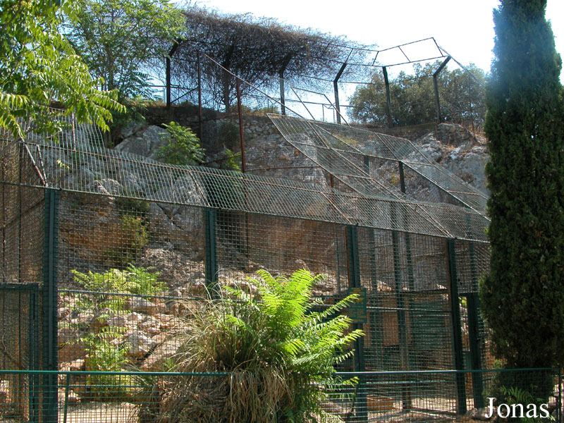 Un escalier pentu et rocailleux mène à la dernière zone du parc. Au bas de celui-ci se trouve à gauche l'enclos des porcs-épics (Hystrix cristata). Cet enclos comme les suivants sont construits à même la paroi rocheuse et datent d'une époque ancienne. Le second enclos héberge trois hamadryas (Papio hamadryas). Le volume est assez vaste mais l'enclos manque d'aménagement intérieur.