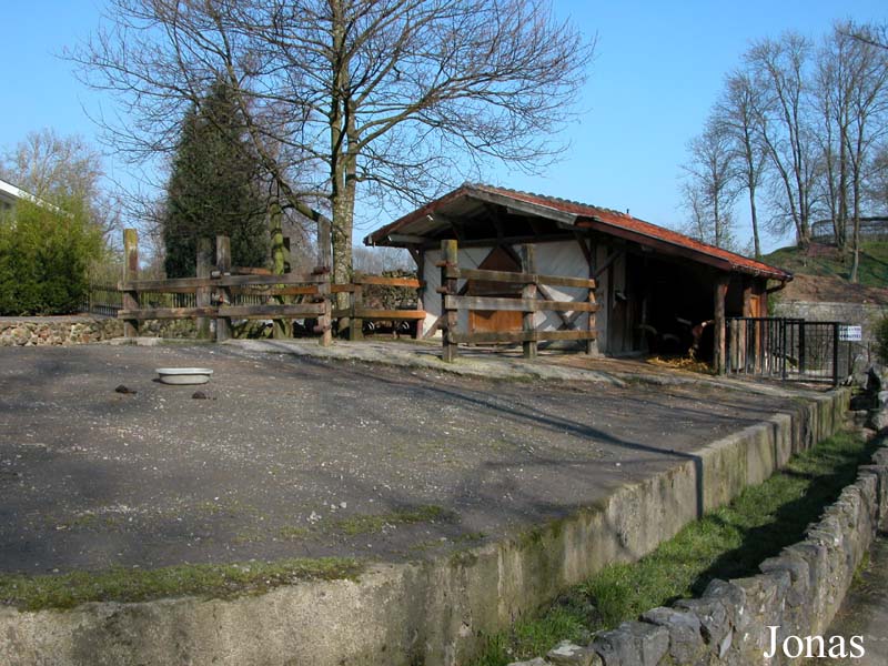 L'enclos des watussis (Bos taurus) se trouve en face de l'enclos australien des wallabys. Une petite fosse située juste à l'arrière est occupé par des ratons laveurs (Procyon lotor). Des casoars à casque (Casuarius casuarius) sont présentés dans l'enclos suivant situé sur la gauche.