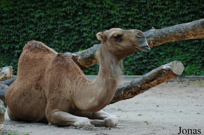 Le visiteur retrouve ensuite le sentier principal, longe à nouveau l'enclos des maras et celui des espèces sud-africaines pour finalement trouver à sa droite la plus grande espèce en taille présentée au Zoo de Landau. Un groupe reproducteur de dromadaires (Camelus dromedarius), autre animal emblématique du zoo, est ici présenté dans un enclos séparé du public par un simple fossé étroit. L'observation des animaux est ainsi privilégiée.