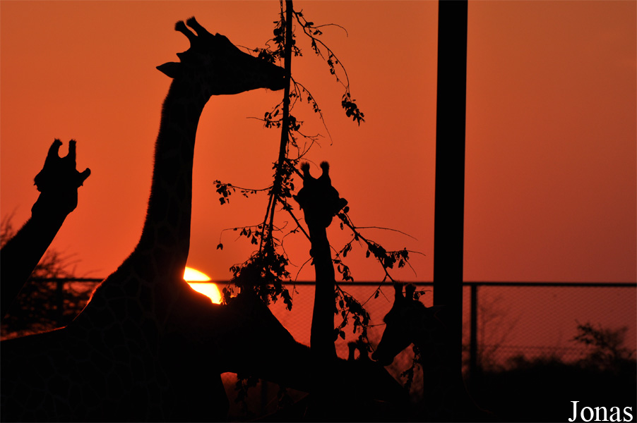 Je prolonge mon après-midi pour profiter des lieux et de la partie publique. Je décide aussi de rester plus longtemps pour voir la face nocturne de l'Al Ain Zoo. En août 2004, j'avais eu la chance d'effectuer une visite nocturne au National Zoological Gardens of South Africa de Pretoria (Afrique du Sud), mais celle-ci ne m'avait pas convaincu. Je suis curieux de connaître comment le concept est appréhendé ici. Vers 17h, le soleil entame tranquillement sa descente et allume de mille couleurs l'enclos africain où viennent d'être nourris girafes, rhinocéros et herbivores divers. Les rhinocéros blancs sont d'ailleurs isolés pour la nuit et des gazelles de Mohr apparaissent une à une et viennent se joindre aux troupeaux amassés autour des points de nourrissage. A peine le soleil a-t-il disparu à l'ouest que la lune, pleine cette nuit, entre en scène à l'opposé. Progressivement, elle s'élève de derrière les montagnes qui bordent l'Al Ain Zoo. La luminosité change et l'air se rafraîchit. Je me promène encore dans les allées pour observer les différentes techniques d'éclairage et je suis, cette fois, agréablement surpris. Seuls certains enclos sont éclairés, d'autres étant complètement laissés dans le noir, ou même fermés au public pour ne pas déranger les animaux ou pour des questions de sécurité. Dans l'obscurité, l'ouïe s'avère importante pour repérer les animaux et c'est une toute autre façon de découvrir un parc zoologique ! Un spectacle de rapaces est proposé à 18h30, exercice difficile dans une culture où la fauconnerie est un art ancestral. Néanmoins, celui-ci est relativement réussi, avec quelques touches de pédagogie. Le trajet de retour vers Sharjah est long, surtout après cette journée fatigante. Je découvre que toutes les autoroutes sont éclairées, comme en Belgique, et sont donc, aussi, probablement visibles de la lune...